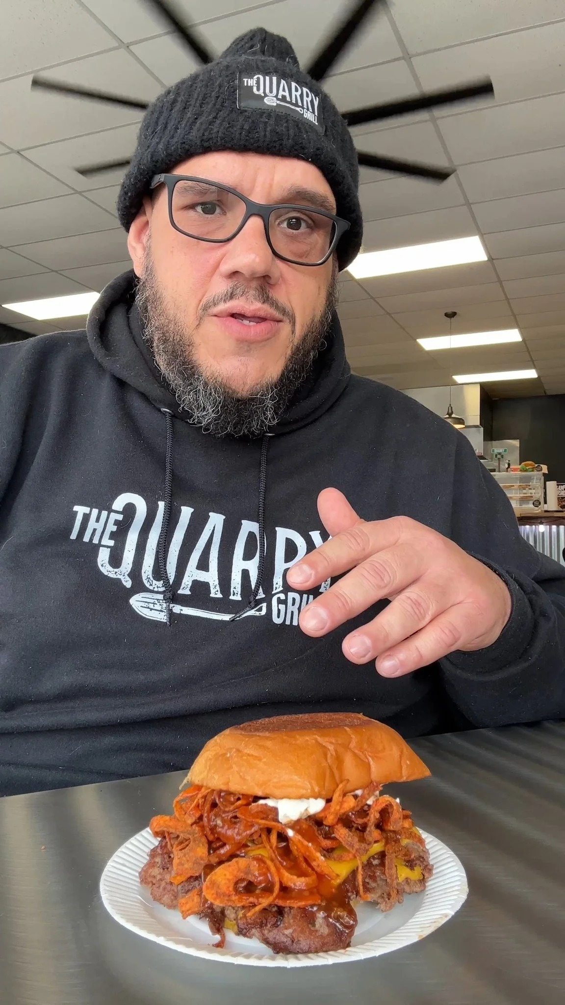 "Absolutely amazing burgers!!! Best I've ever had!!!" • "Great burgers! Get the Quarry burger!" • "Umm, WTH did I just eat !!! Oh man!!" • "Best burger I ever had. Seriously, go here" •